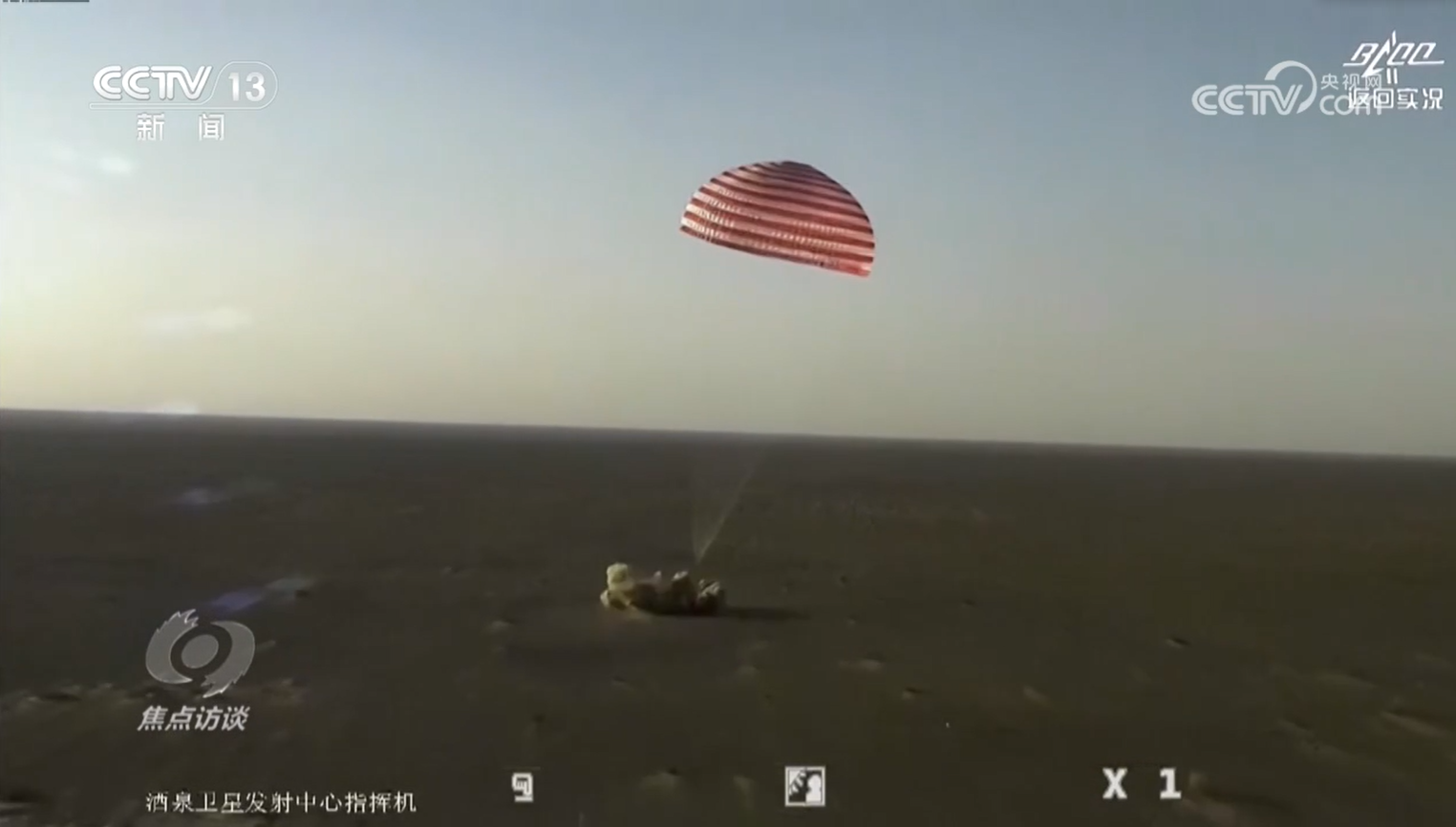酒泉卫星发射中心罗胜:“推迟返回,着陆区域、瞄准点区域是不一样的,我们对着陆区域进行了重新详勘,组织空中、地面都进行详勘,便于我们能够快速抵达着陆现场。”