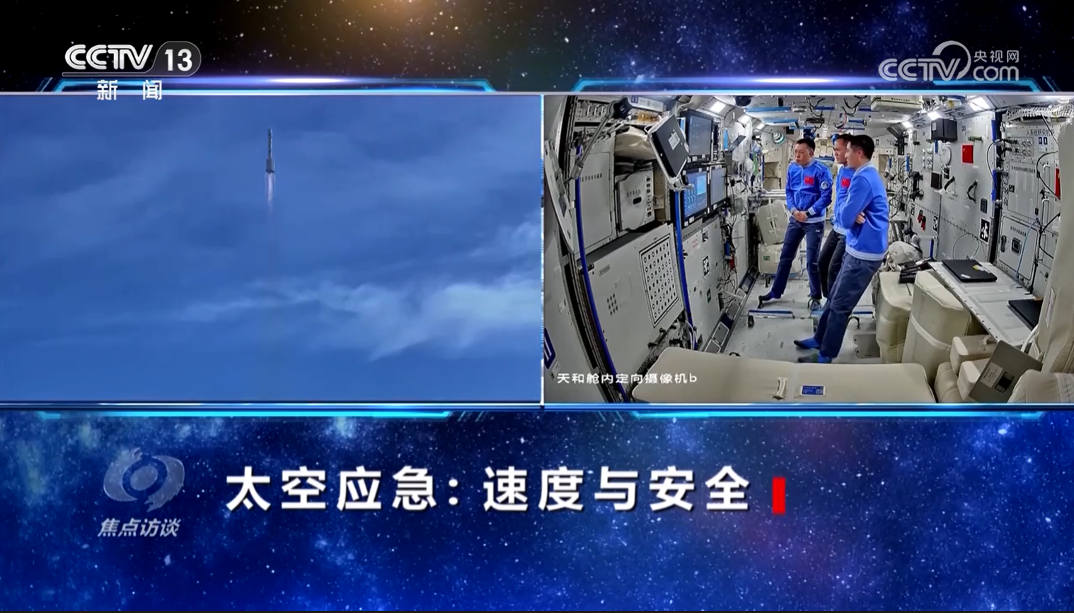 周建平:“我们有两个应急发射方案,一个是8.5天,一个是16天。8.5天是天上发生了必须尽快把航天员接回来的情况,现在空间站处于非常好的状态,航天员住在空间站上,安全性非常高,所以我们决定采用16天的应急方案。”